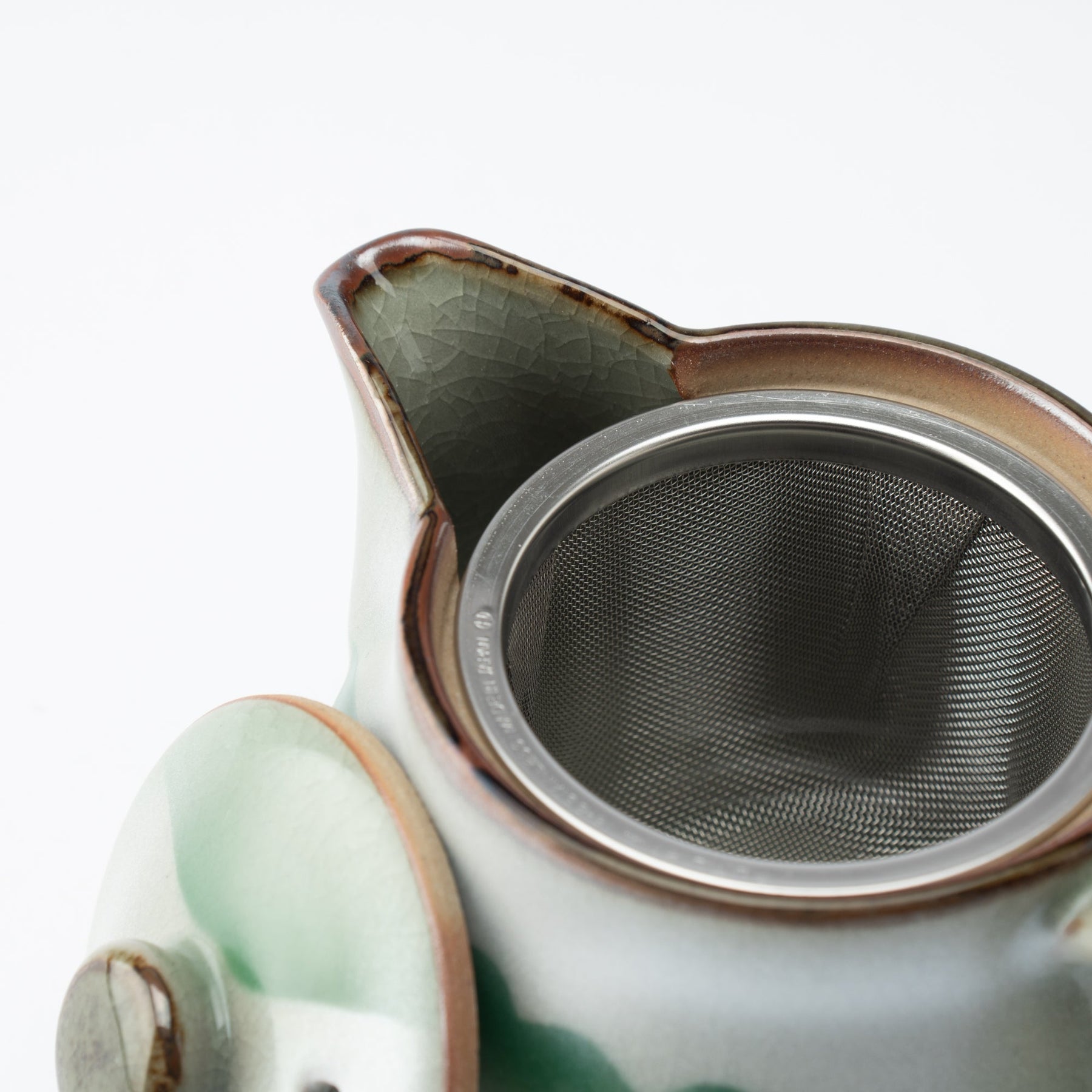 Perfectly sized for 2 to 3 cups, the teapot includes a stainless steel tea strainer for convenience. Its elegantly simple spout ensures easy pouring and cleaning, blending functionality with artistic finesse.