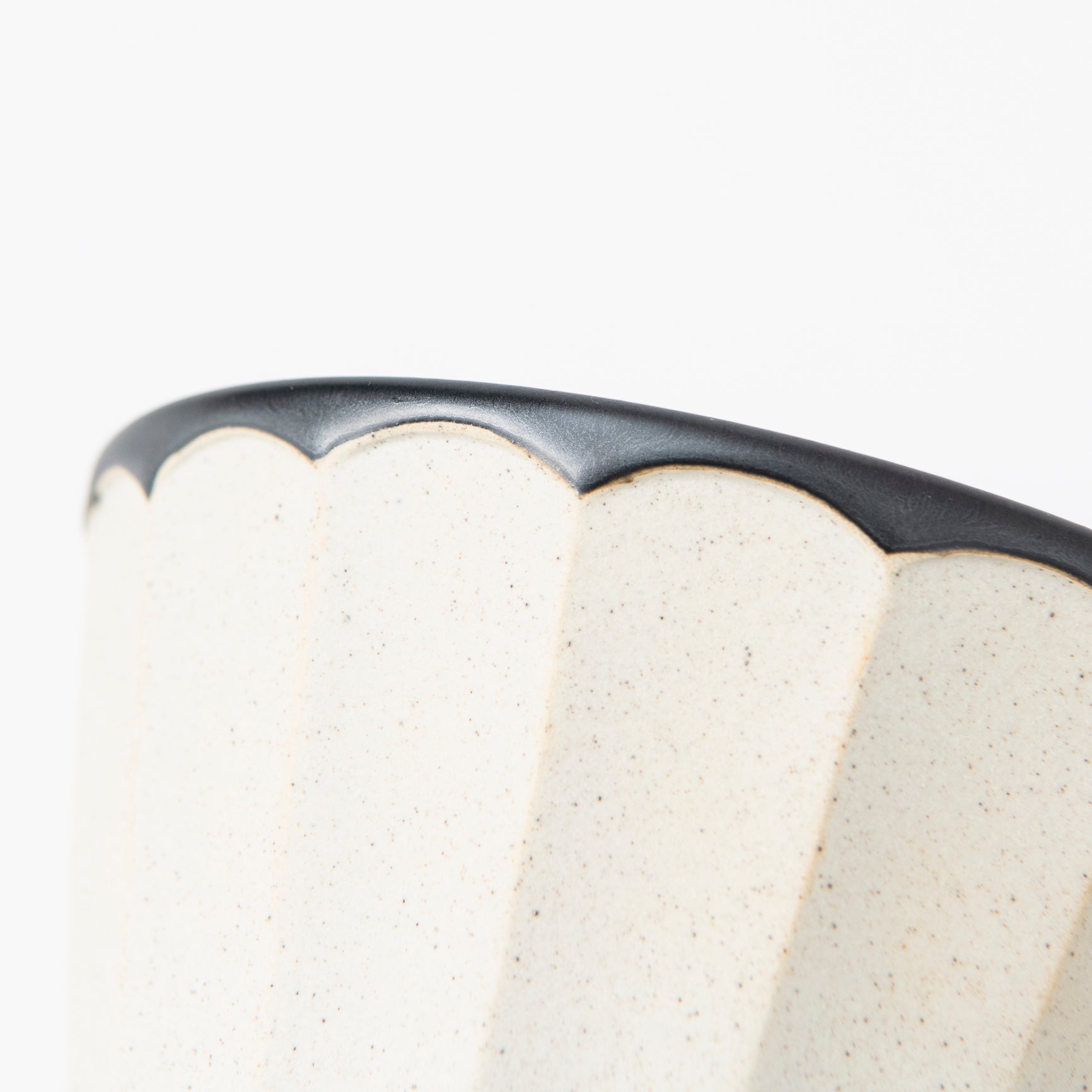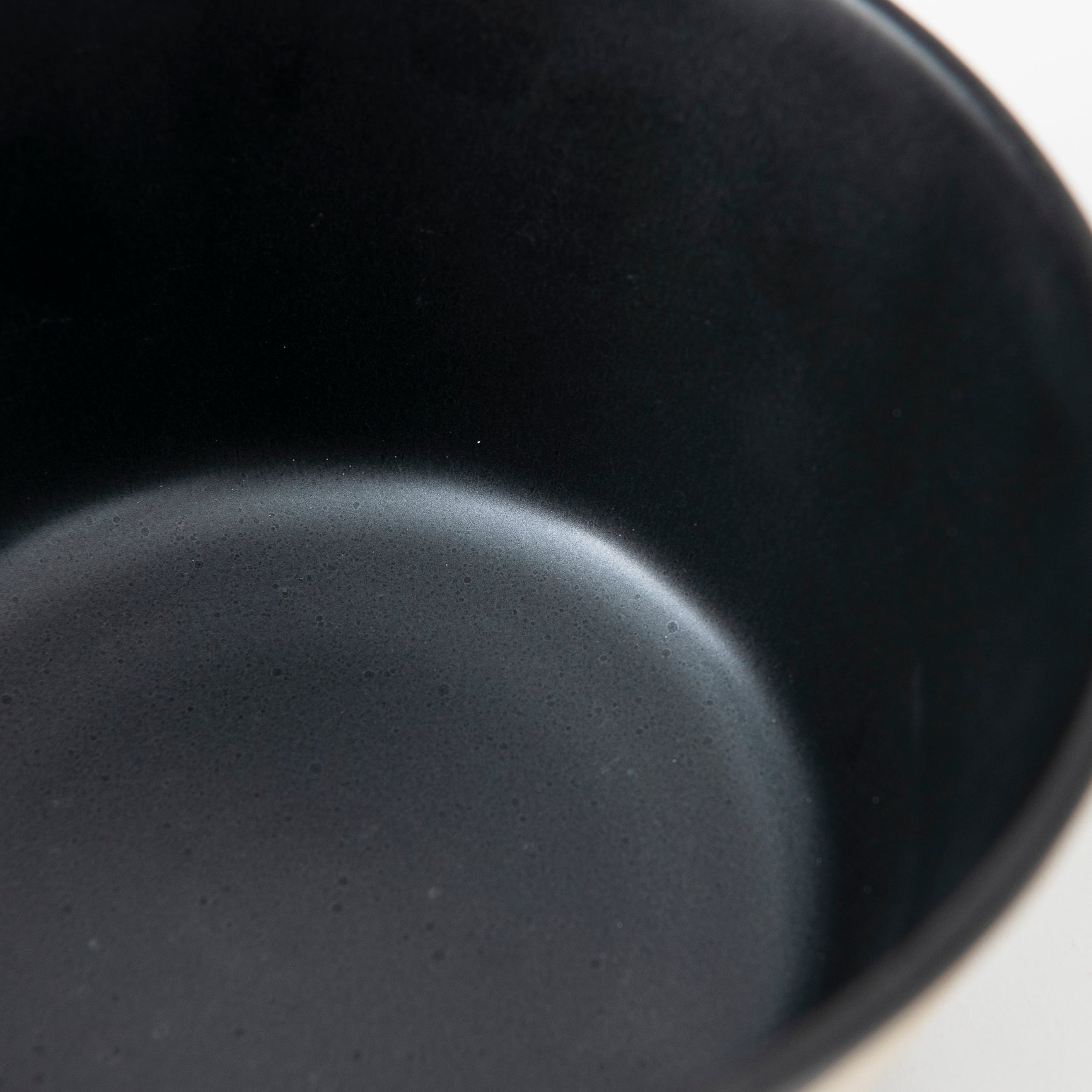 This regular-sized donburi bowl features a smooth, matte black glaze on the outer rim and inner surface, creating a striking contrast with the textured, natural clay on the faceted exterior. This combination of materials offers both a refined tactile experience and a visually sophisticated appeal.
