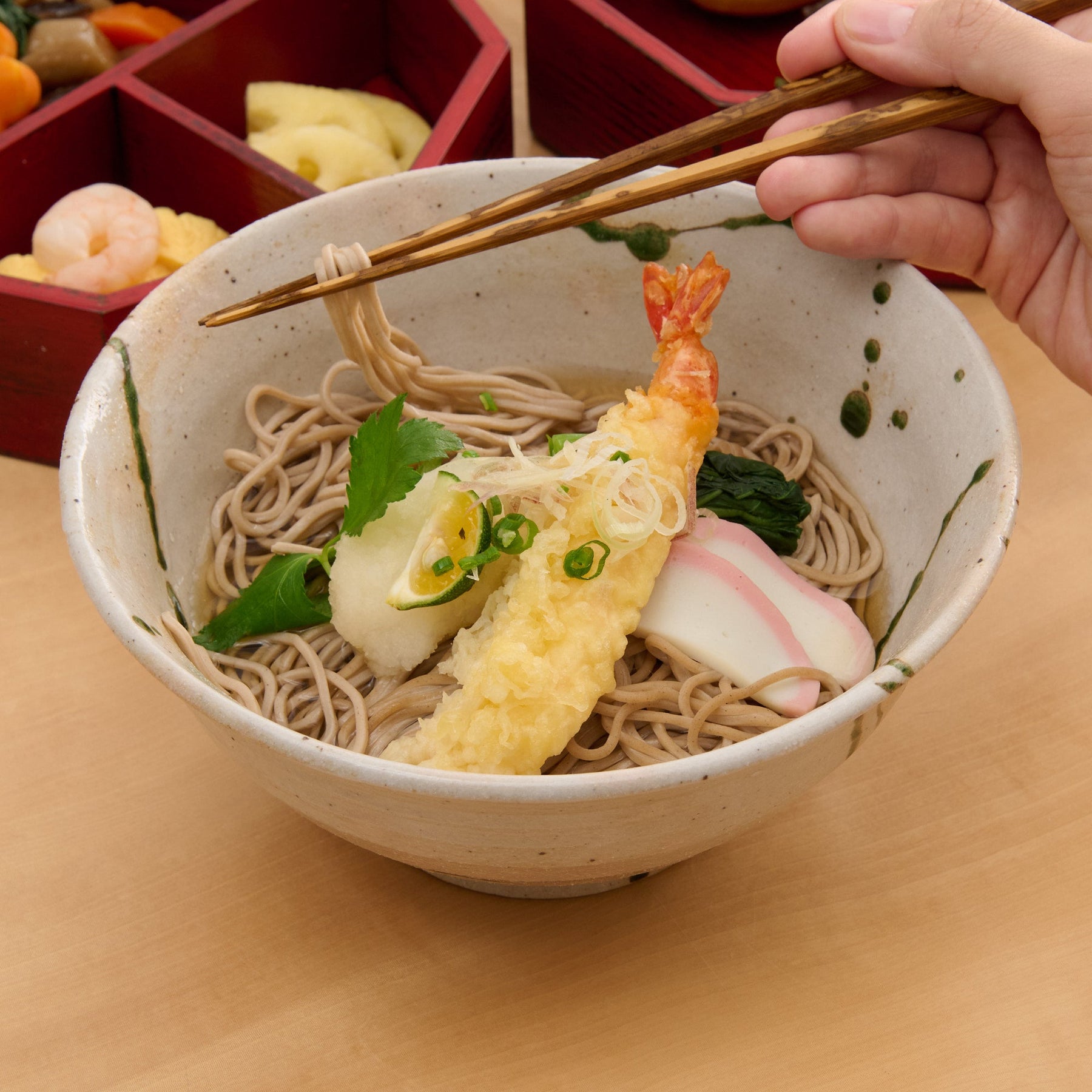 Lightweight and thin, the bowl is easy to handle, even when filled with soup-heavy noodle dishes. Its rim is crafted for comfortable sipping, while the slightly raised foot provides a secure grip. This versatile piece is not only ideal for ramen but also serves well for other noodle dishes.