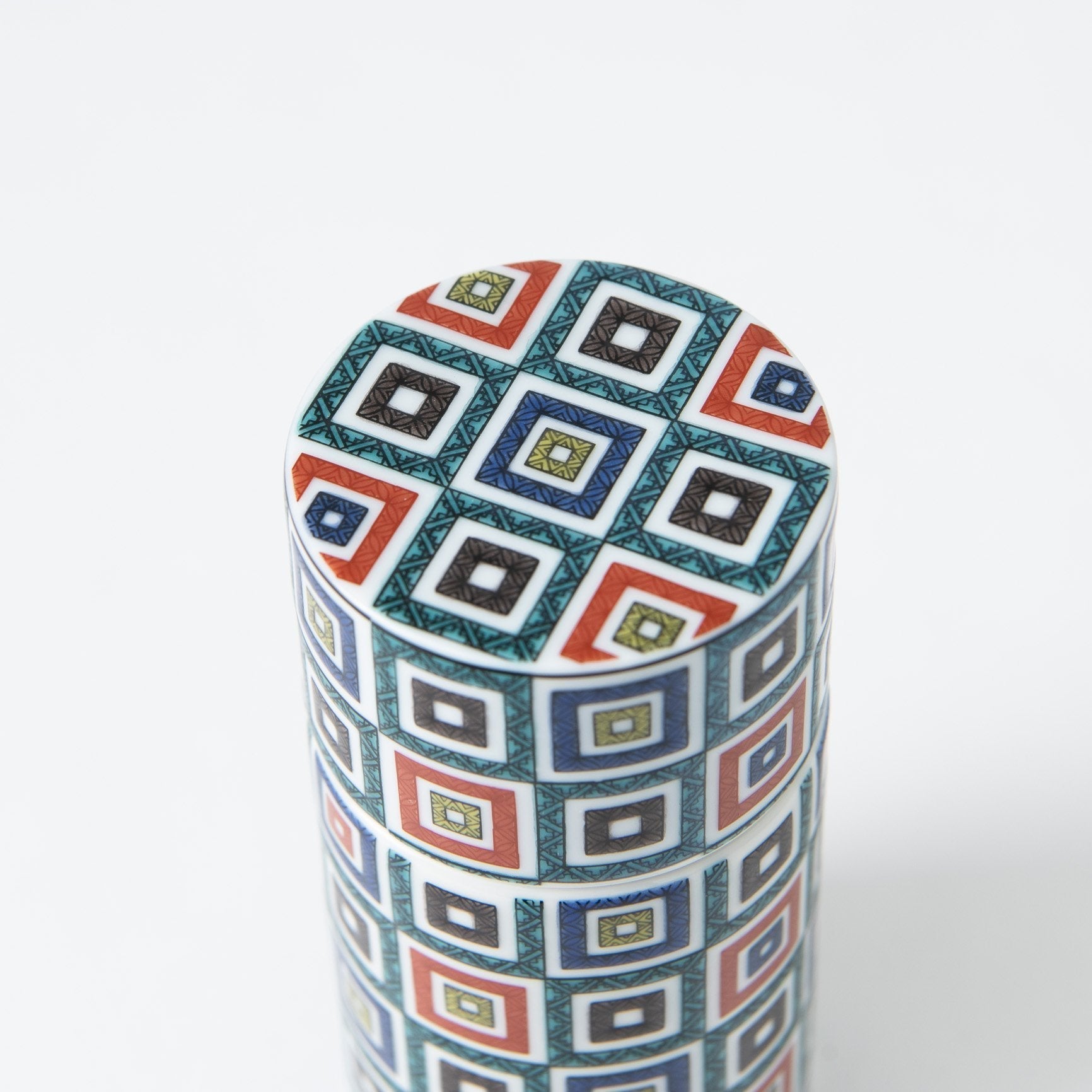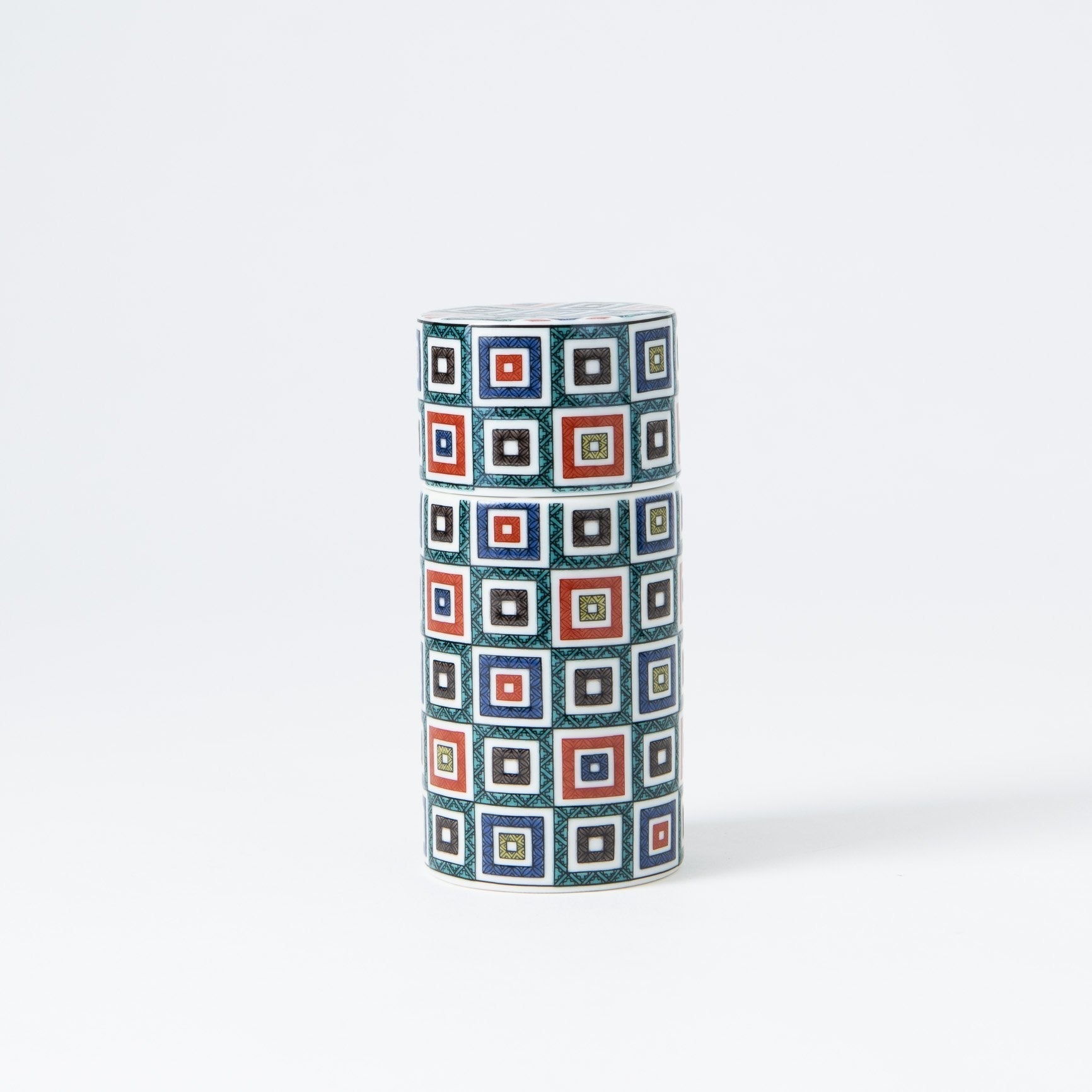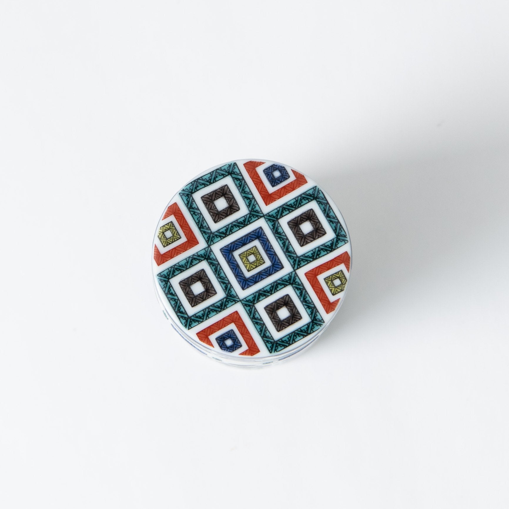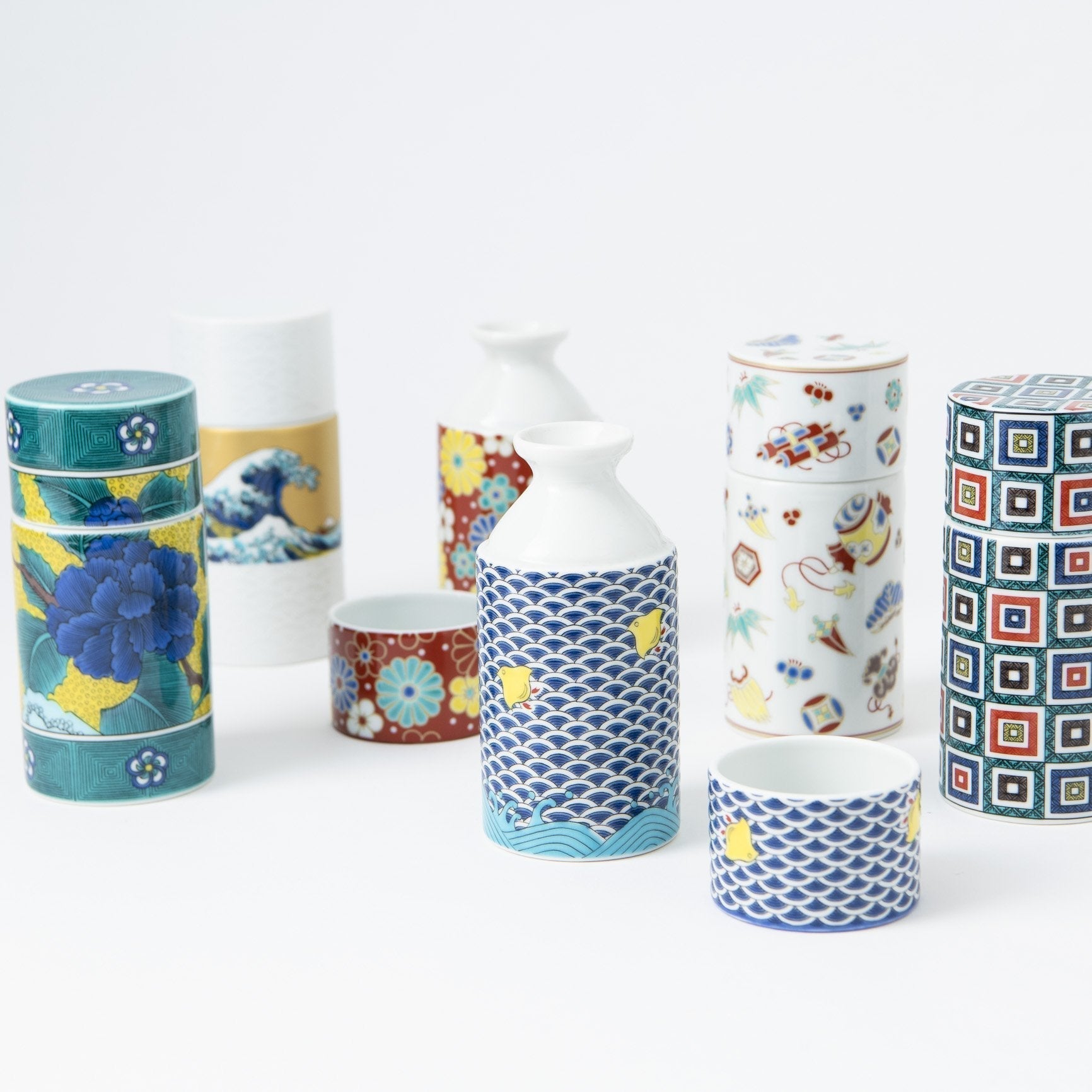 You can elevate your table setting with a series of Kutani ware with color tile patterns, such as plates and sake cups.
