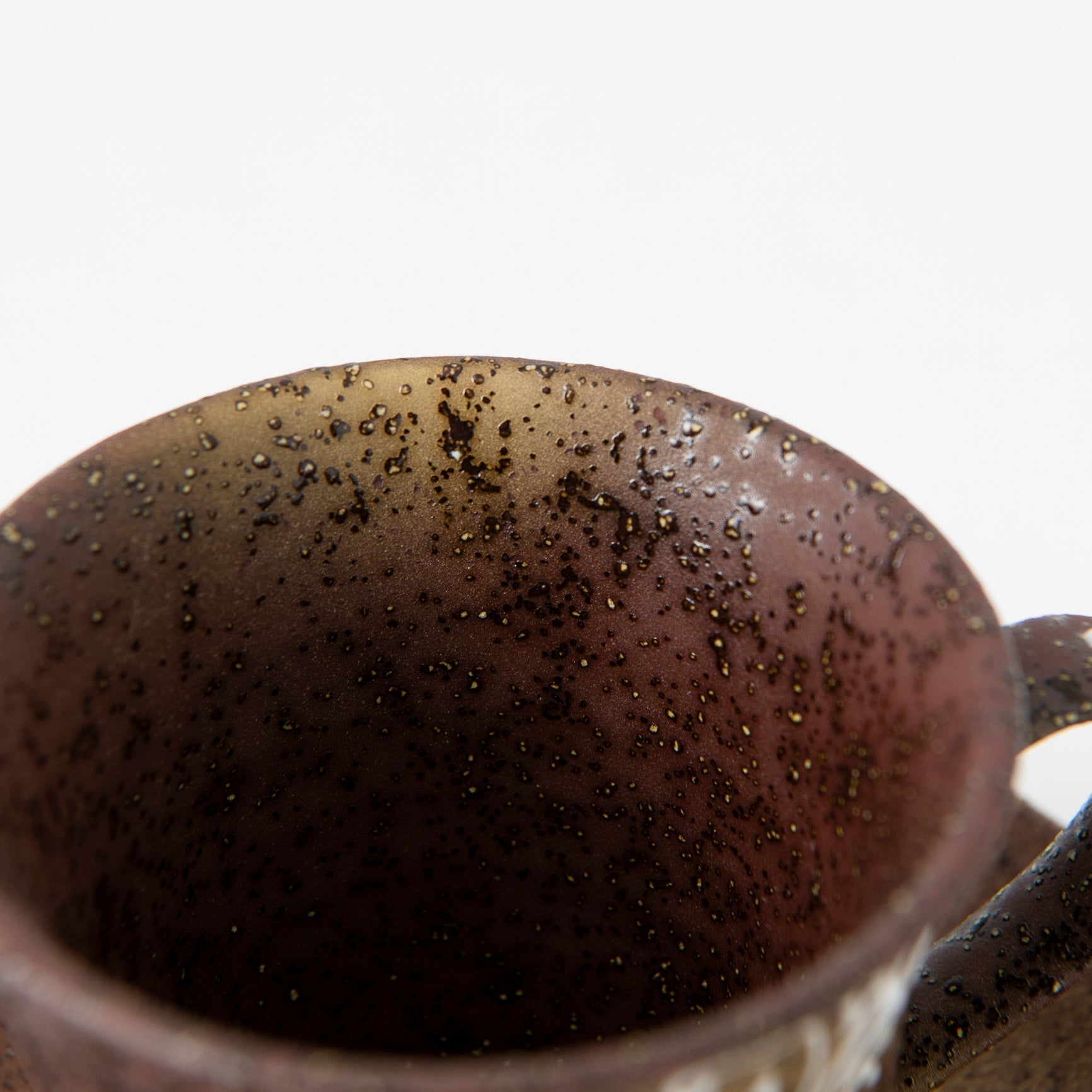 The raised texture of the cup is comfortable and fits in the hand perfectly. The gradient pattern created by baking at high temperatures is a graceful combination of nature and art.