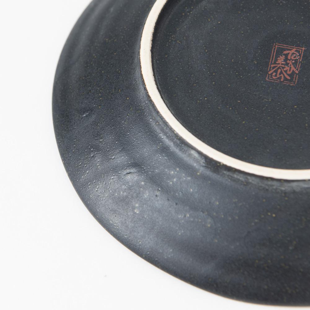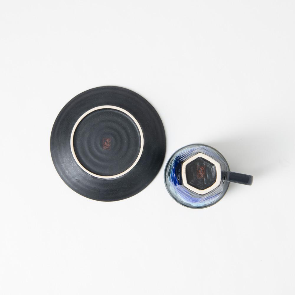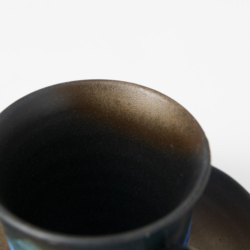 This cup and saucer gives a luxurious quality. Perfectly balanced with the unique texture of the stoneware and the Ginsai, the Kutani ware technique which silver leaf accents applied on top of it.