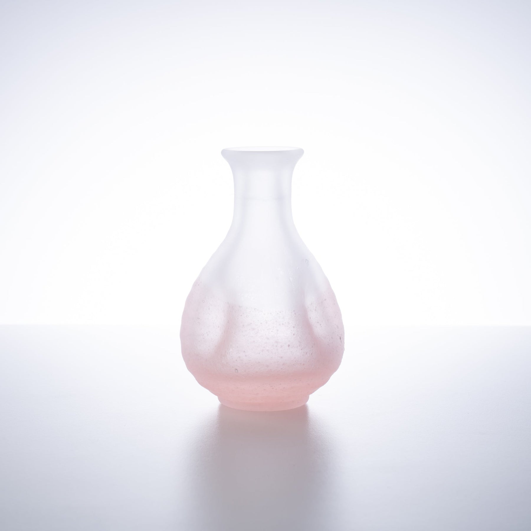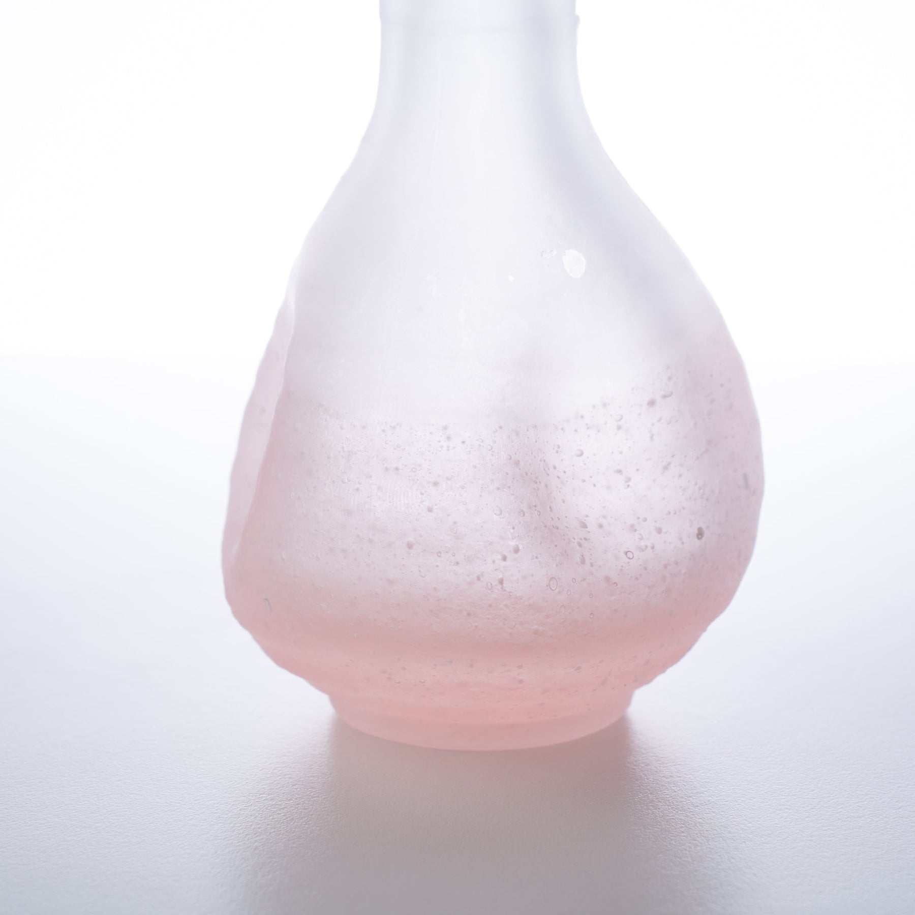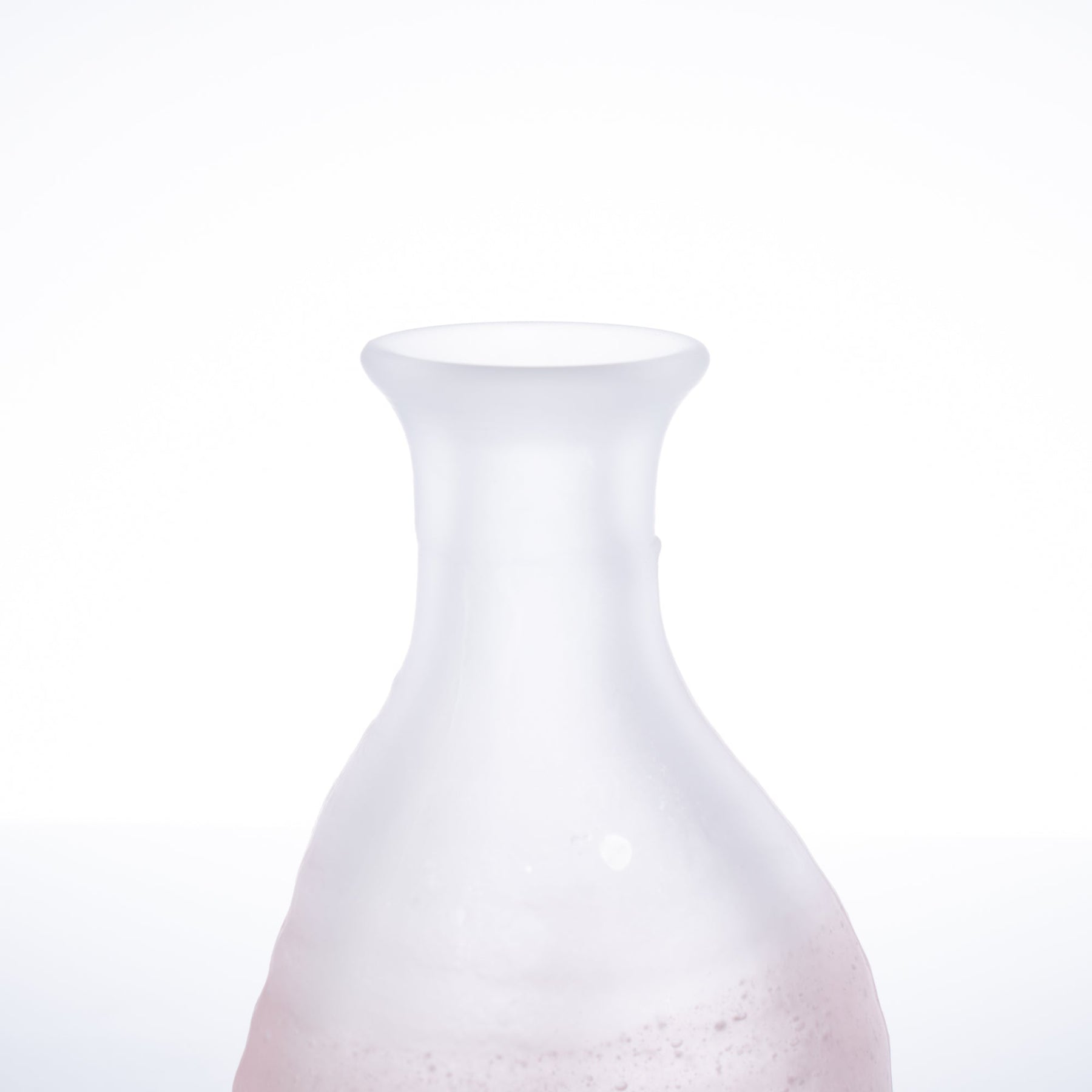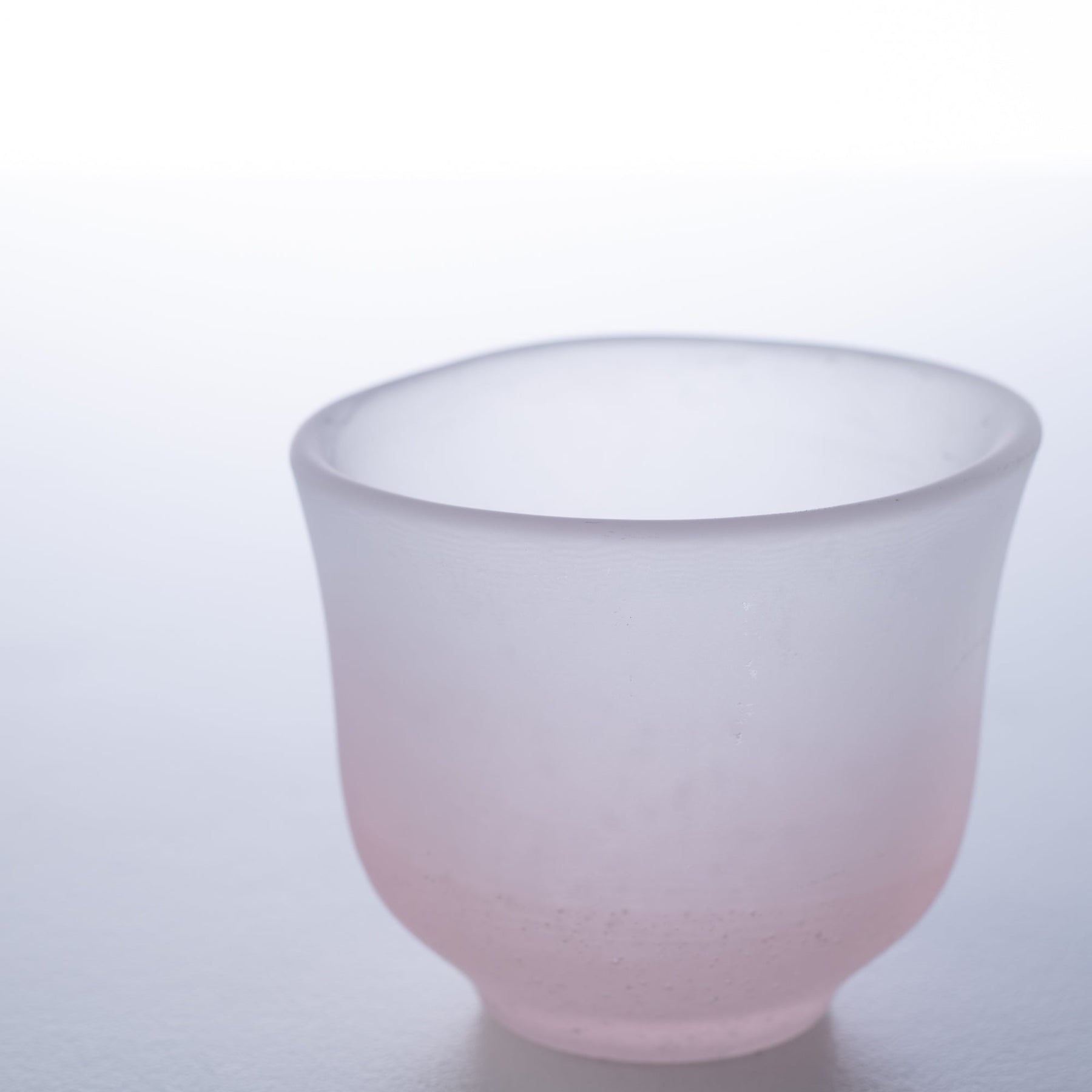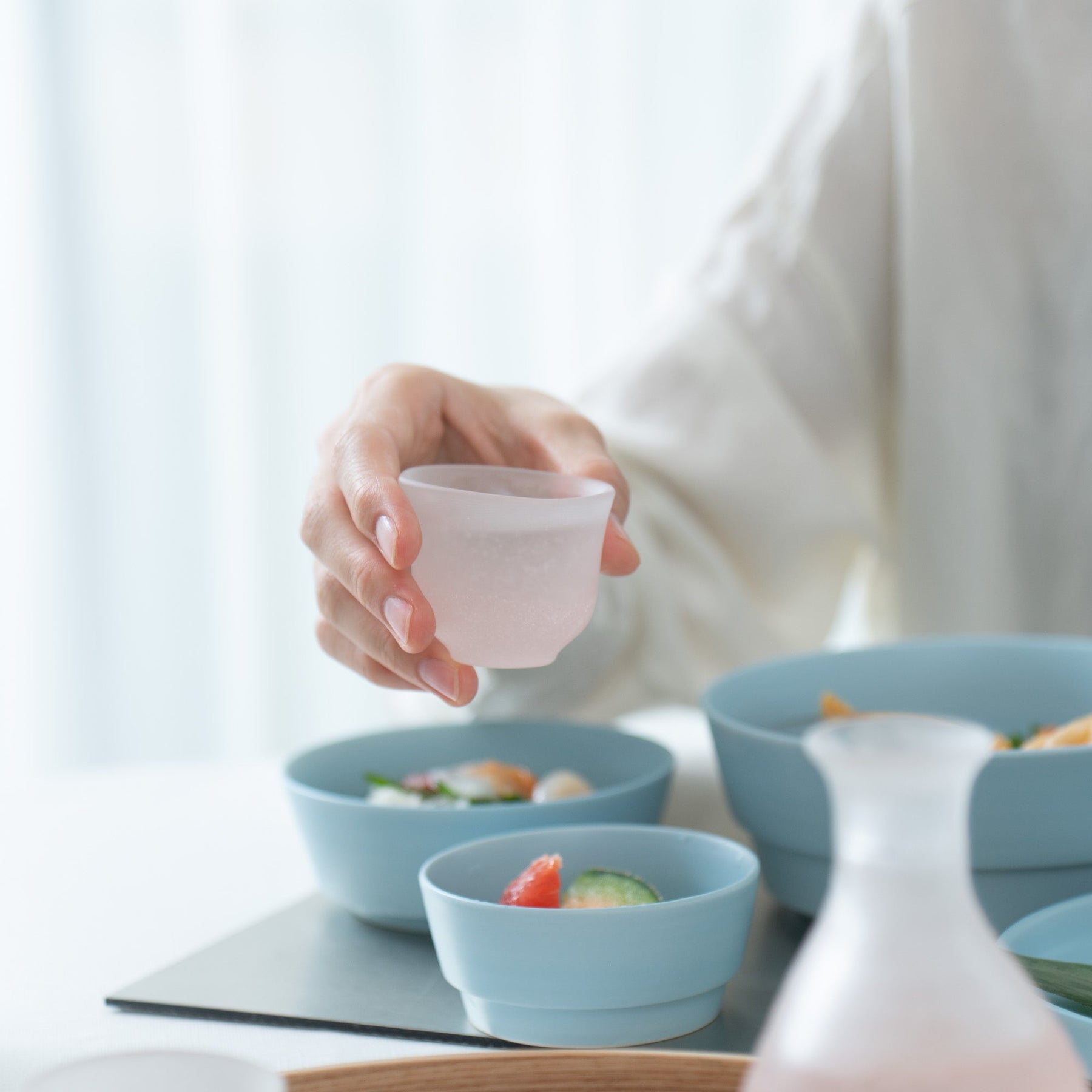 The soft, hand-formed contours and delicate, pale peach hue lend a gentle charm to any table setting. The frosted glass finish enhances the refreshing sensation of enjoying chilled sake.