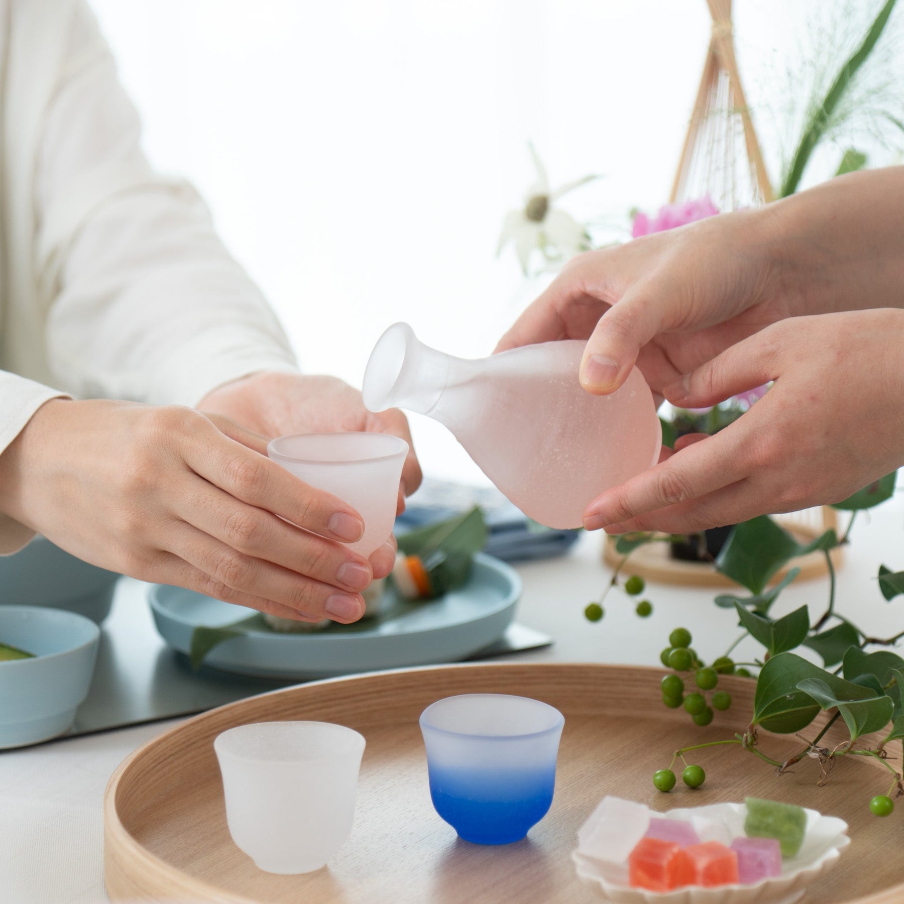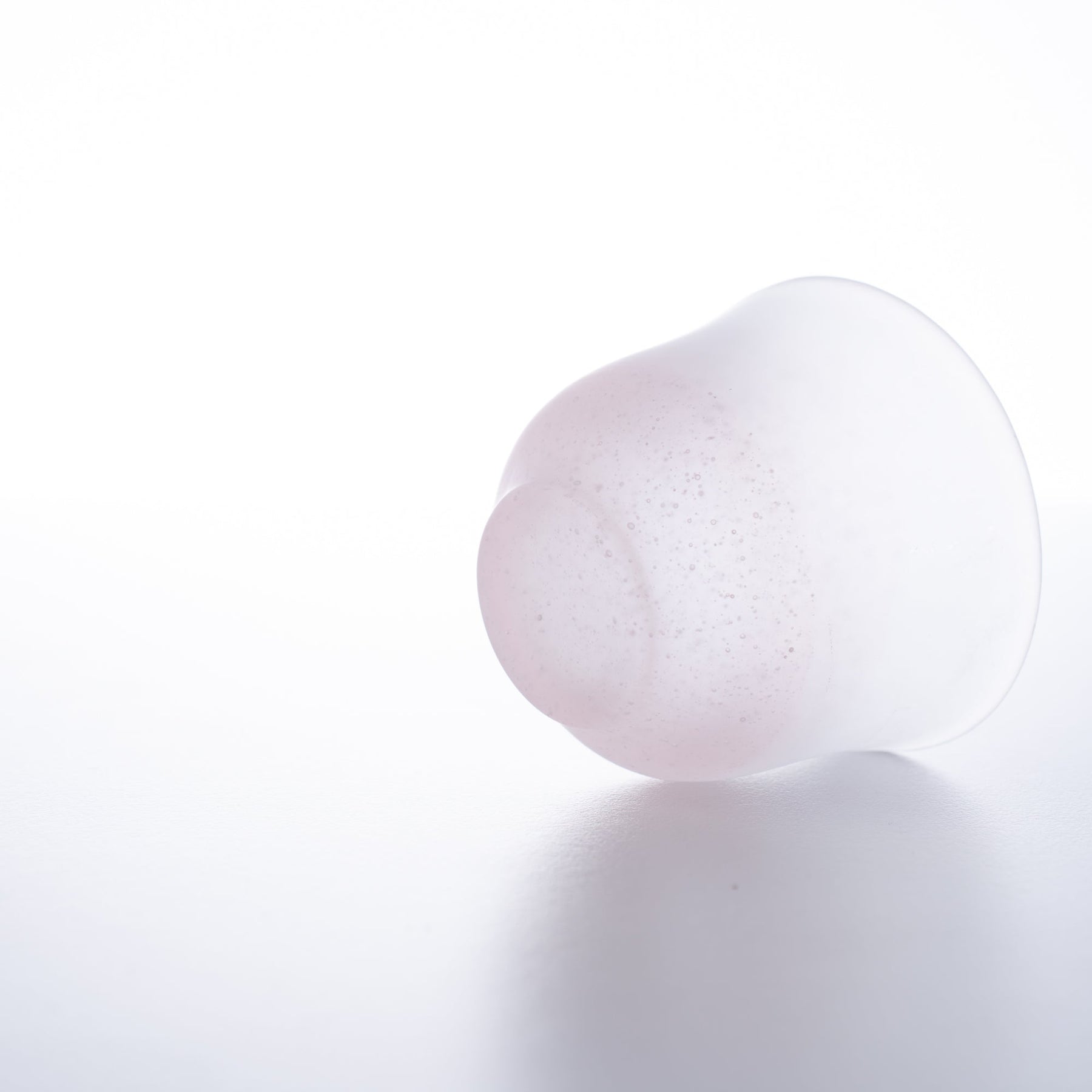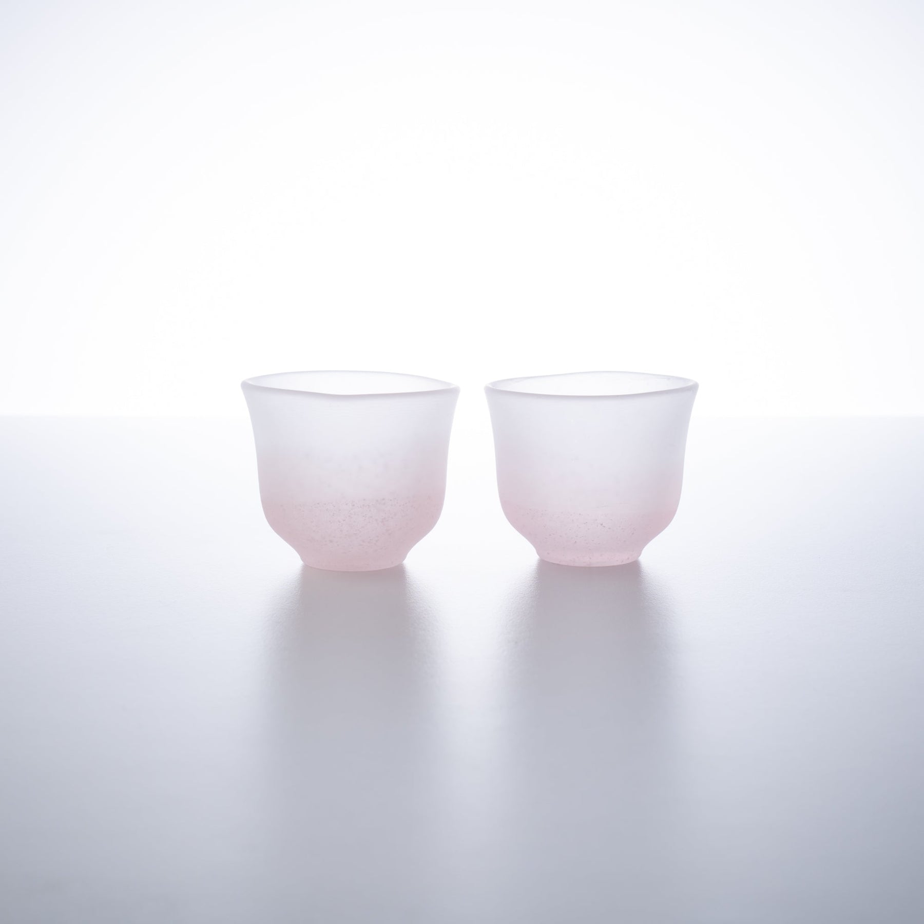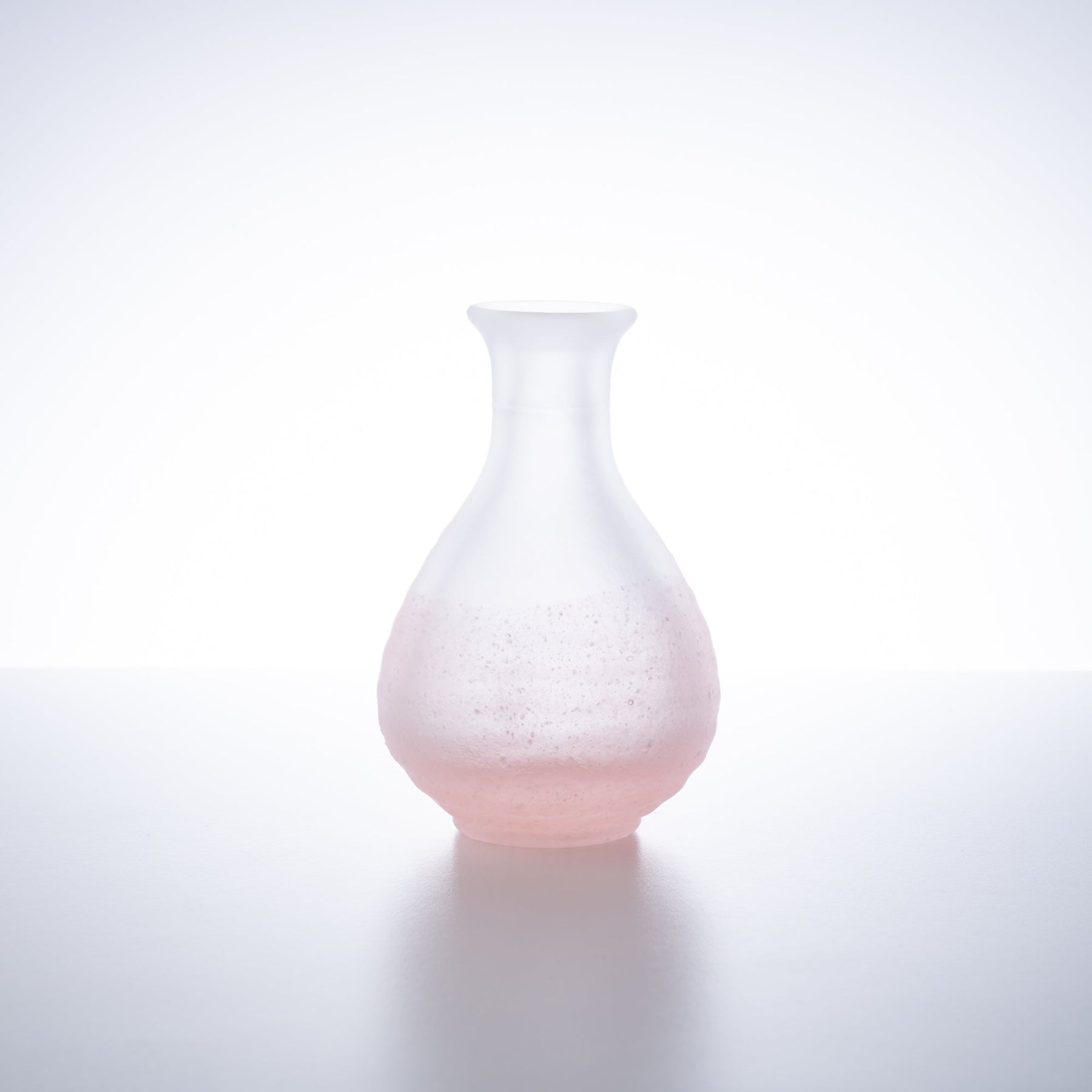 The soft, hand-formed contours and delicate, pale peach hue lend a gentle charm to any table setting. The frosted glass finish enhances the refreshing sensation of enjoying chilled sake.