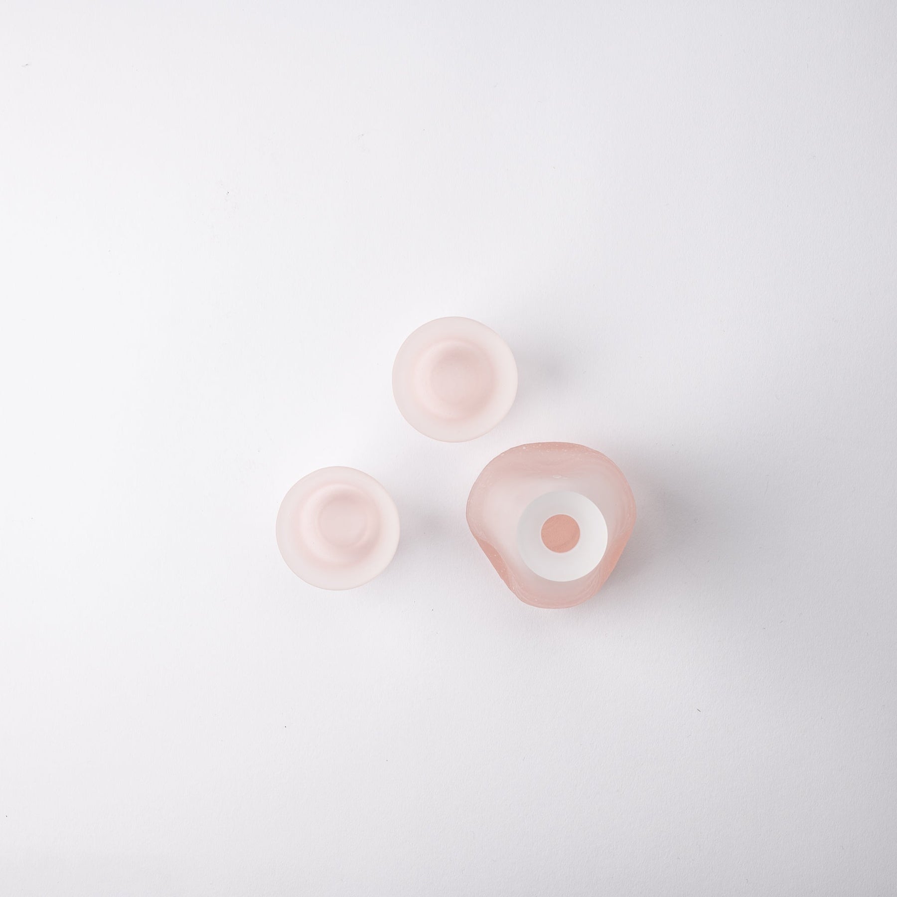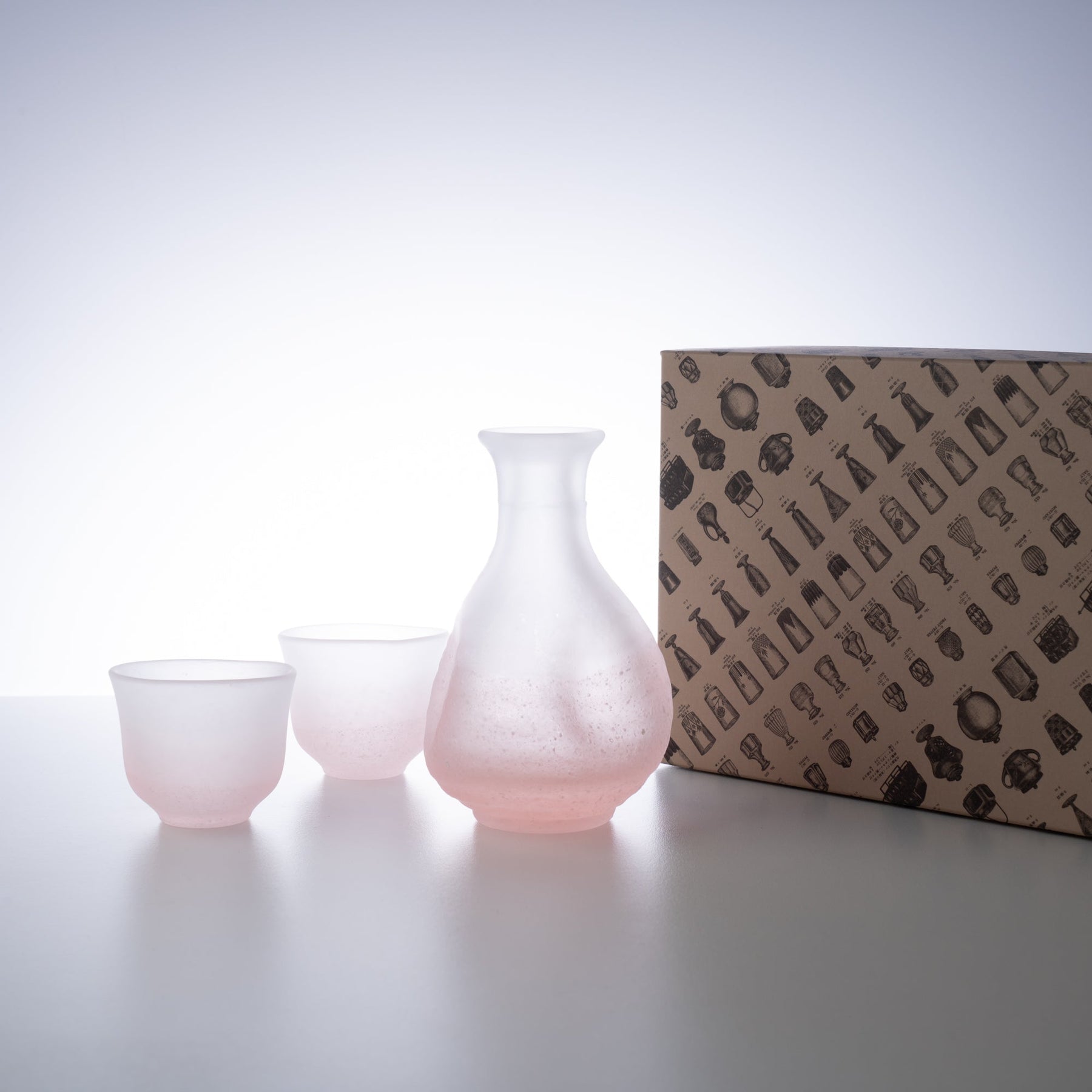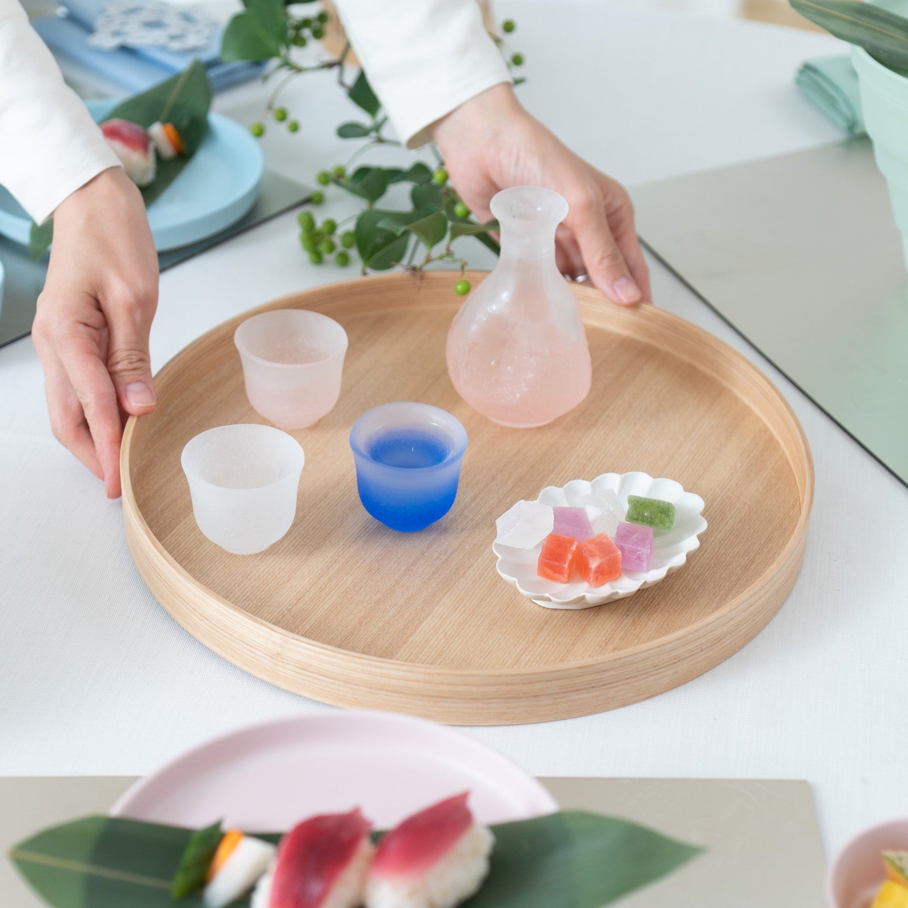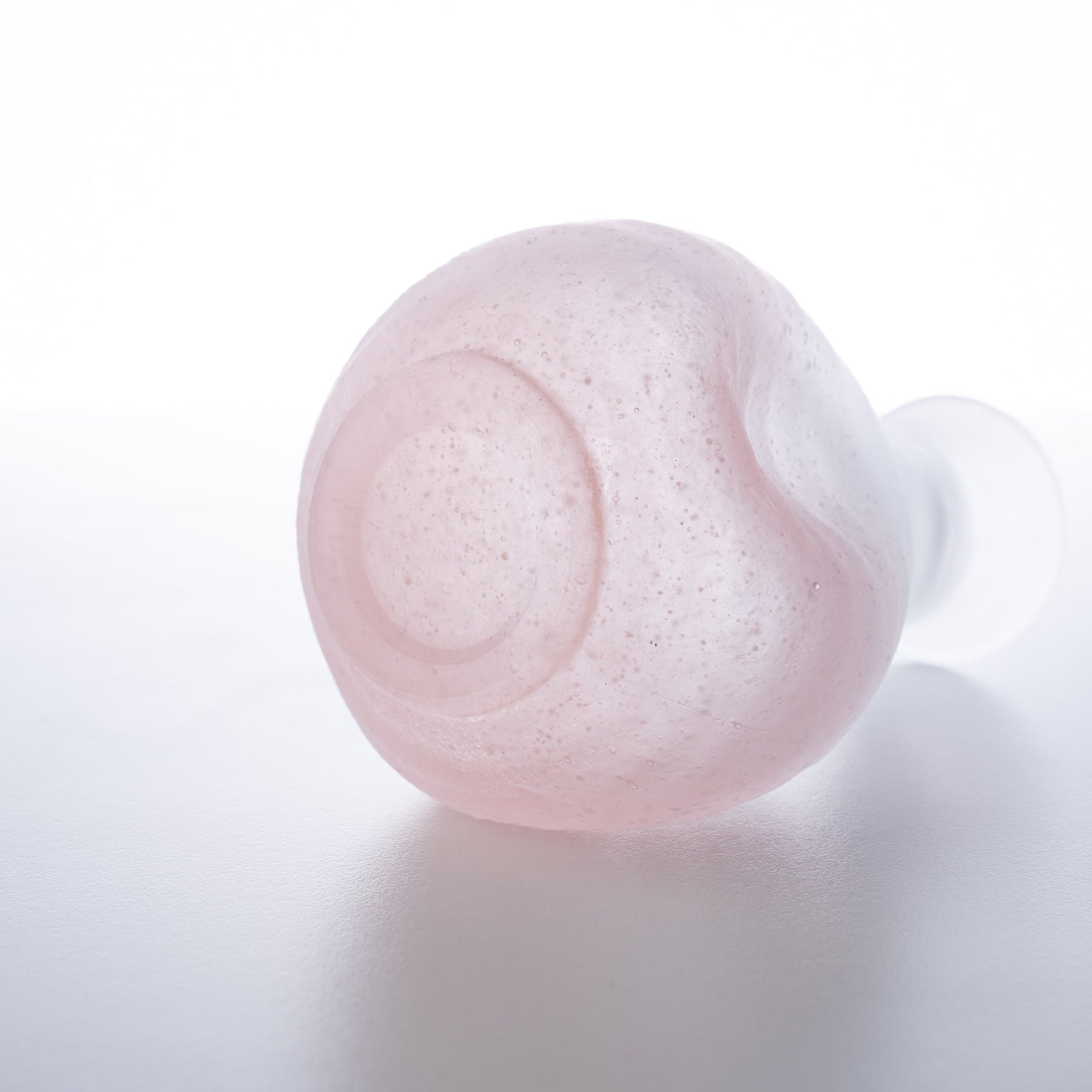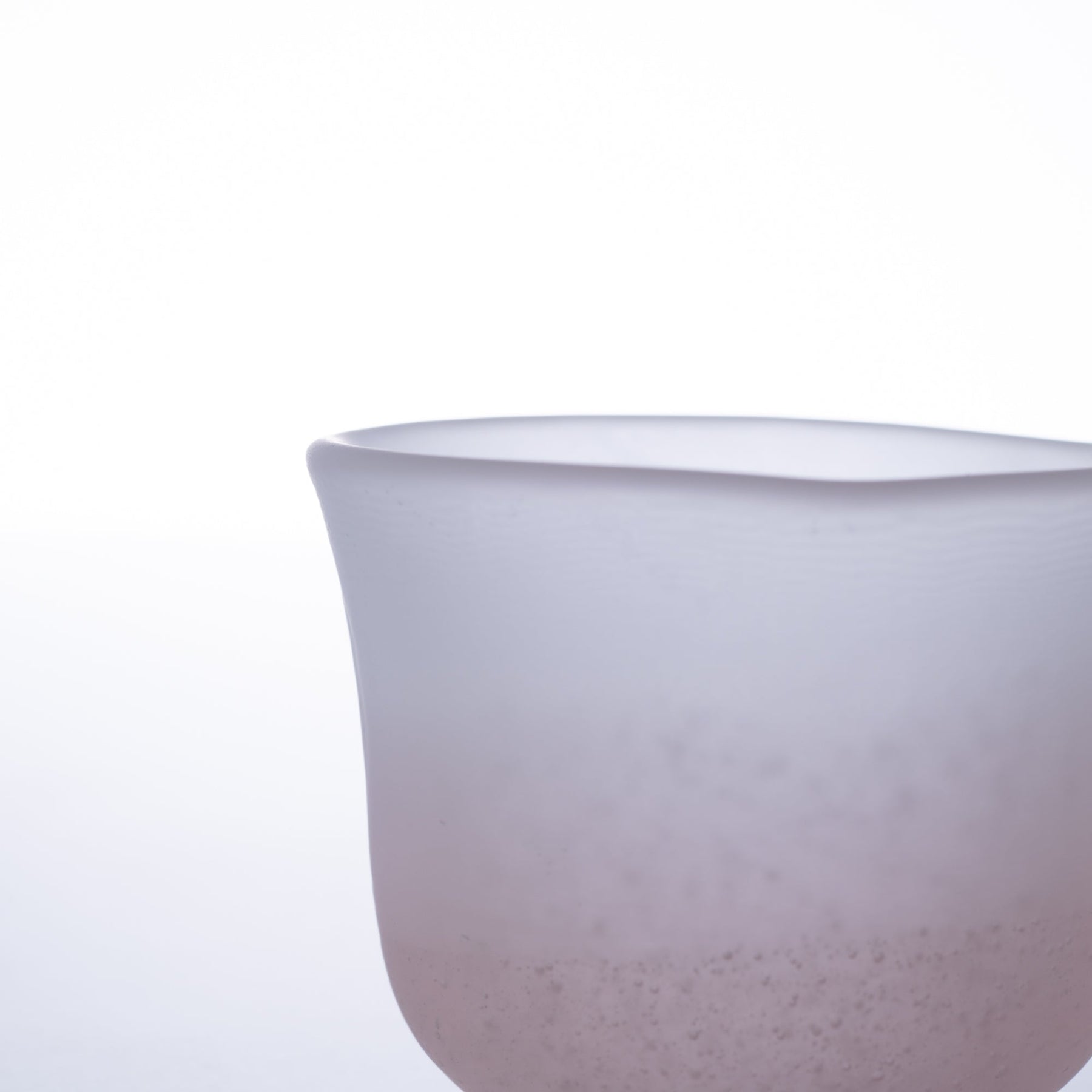 The soft, hand-formed contours and delicate, pale peach hue lend a gentle charm to any table setting. The frosted glass finish enhances the refreshing sensation of enjoying chilled sake.