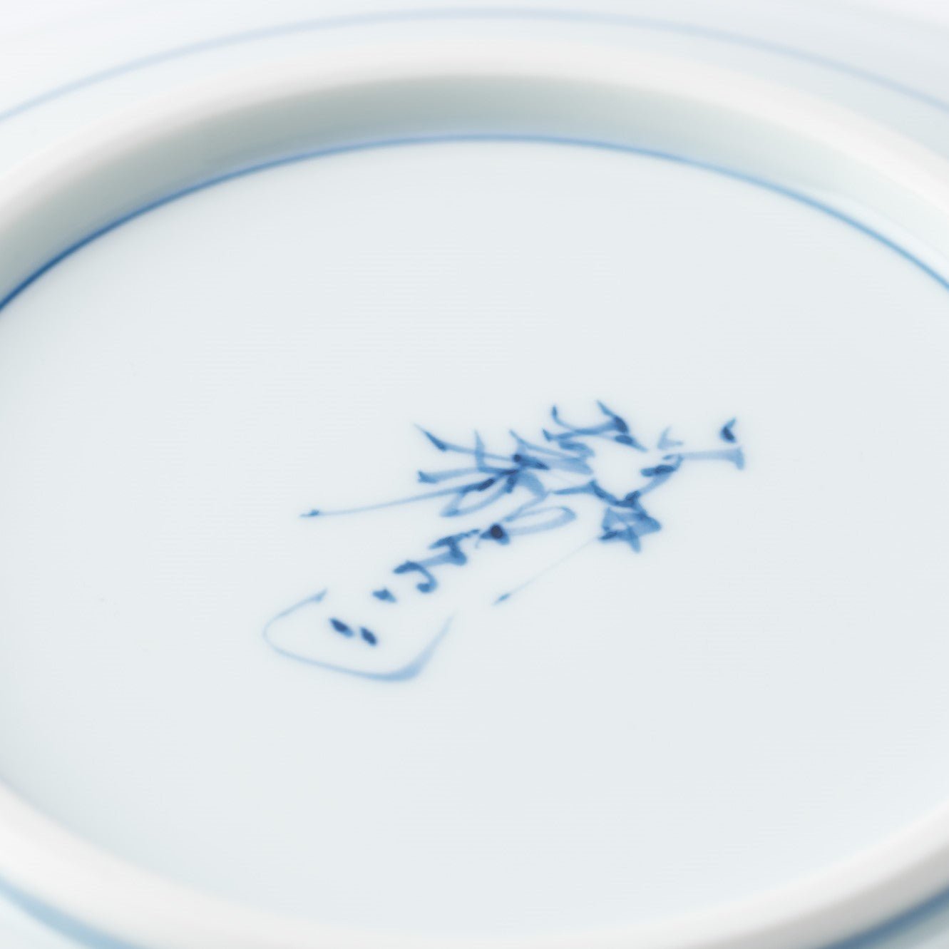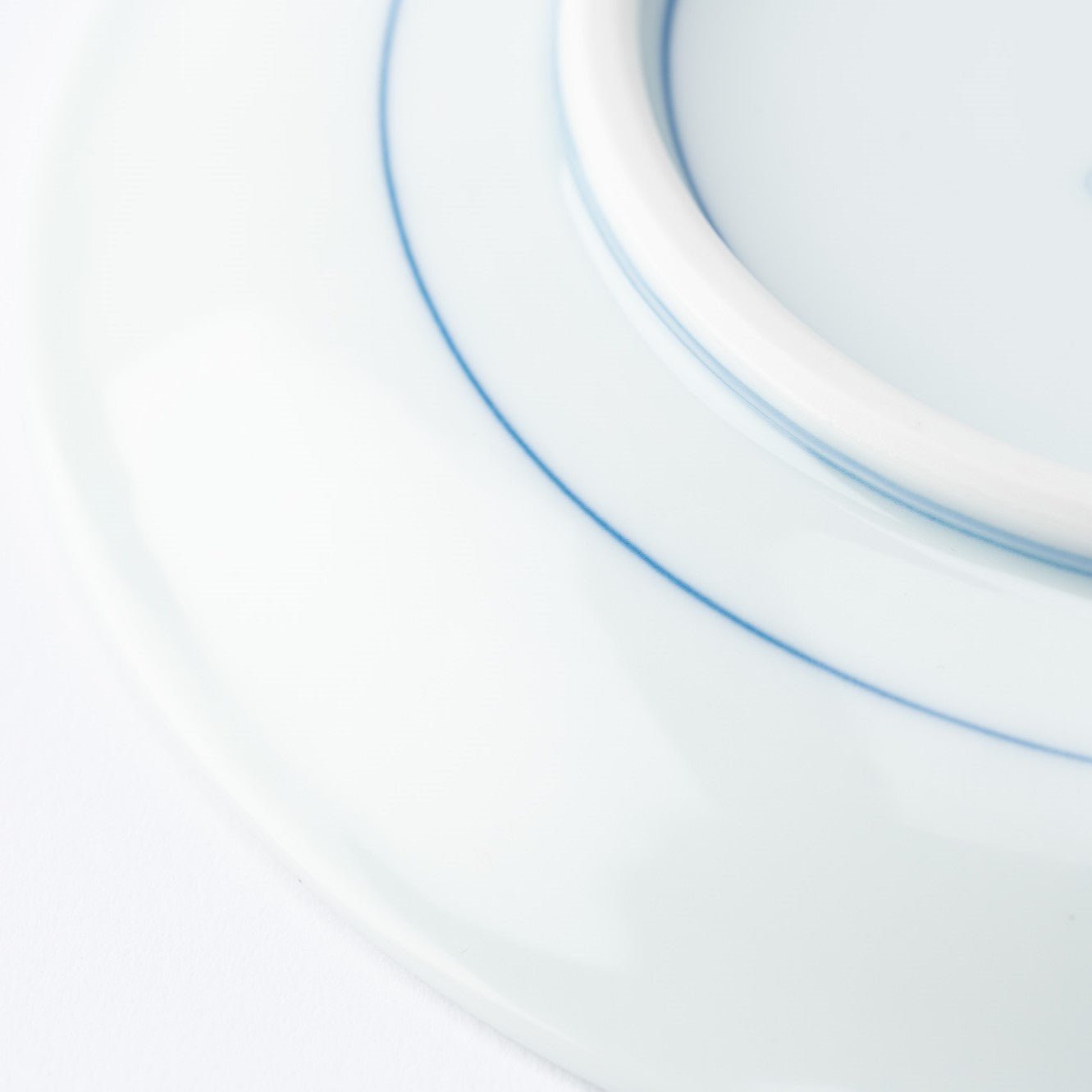 This blue and white plate has a larger surface of white than a fully painted plate, so it goes well with appetizers and small dishes as it gives a slight accent to the presentation of the dish. The size makes it a perfect item to be placed at individual settings for a traditional Japanese meal.