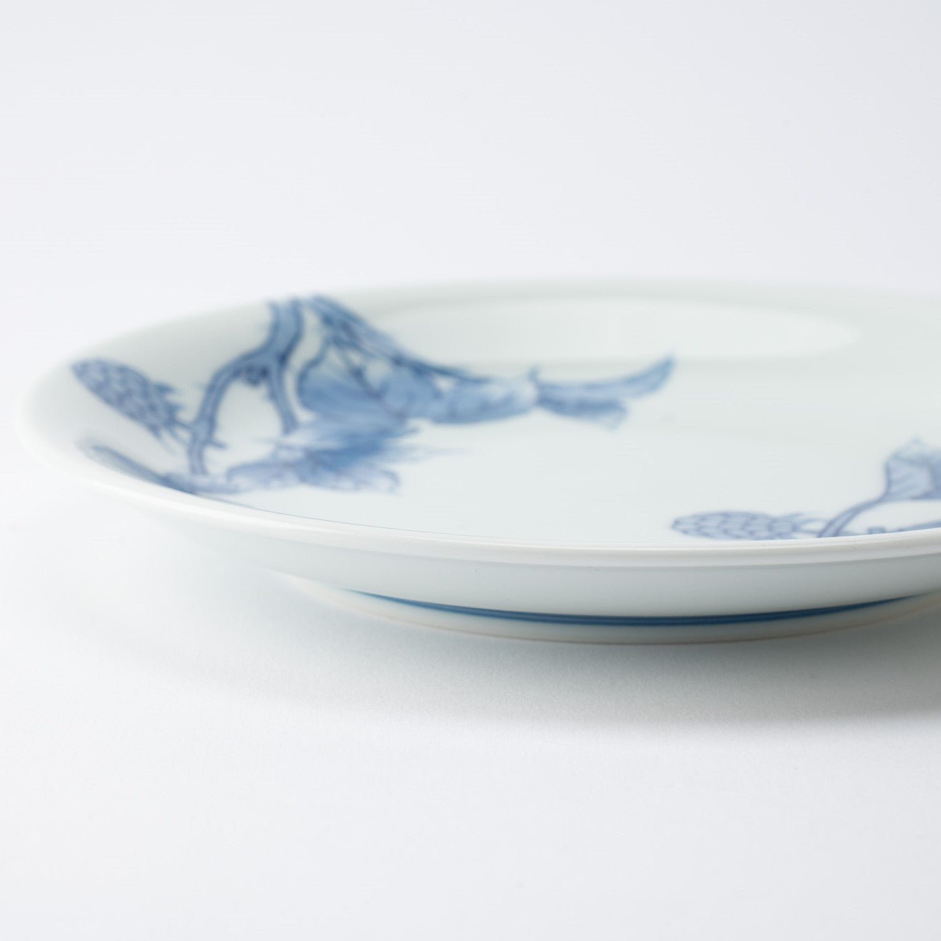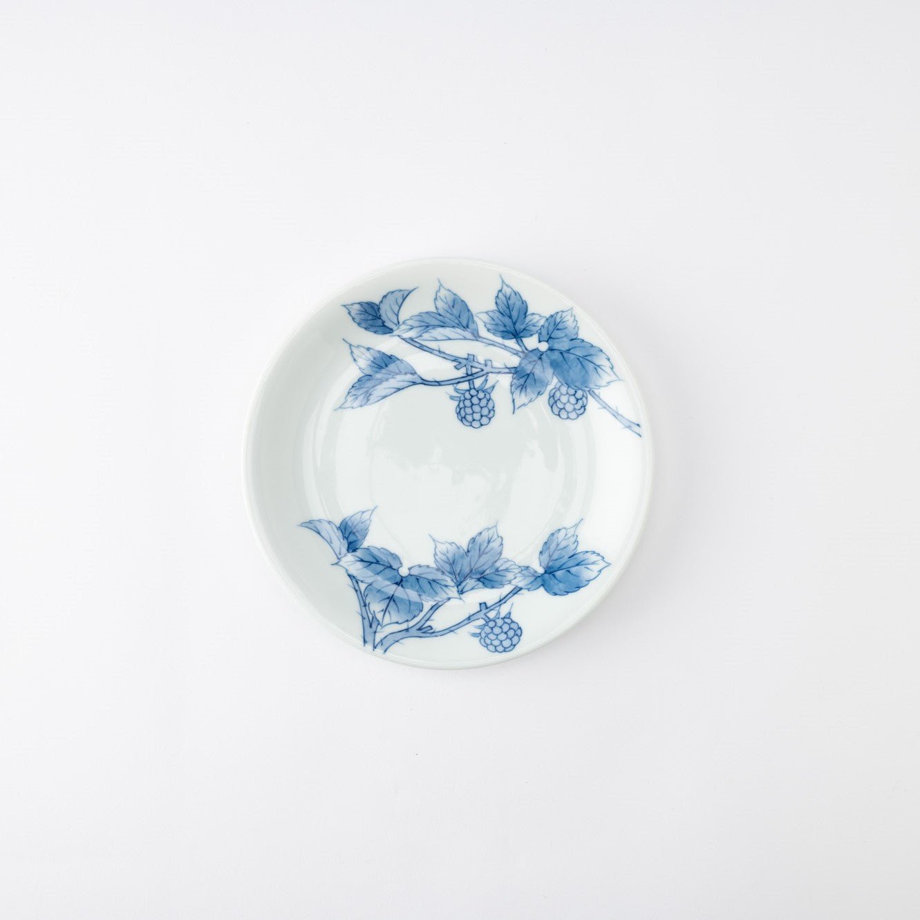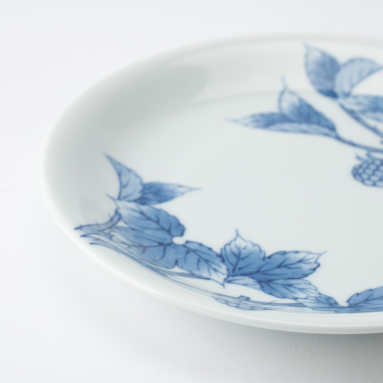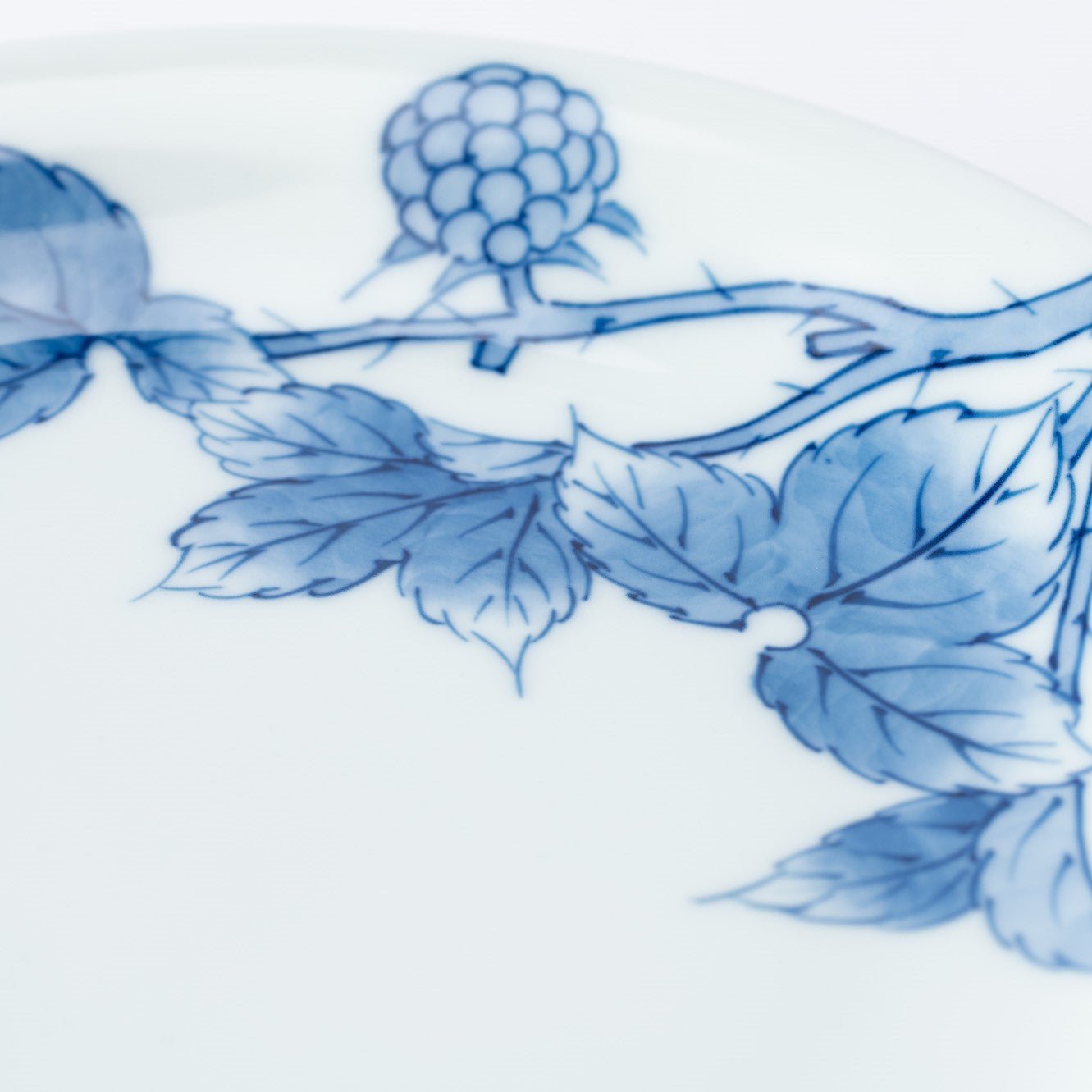The harmony between white porcelain and blue paintings is the beauty of this Mikawachi ware plate. Two raspberry branches painted in flowing, fine lines are superbly composed, and the small round raspberry berries gracefully match the sharpness of the leaves and branches.